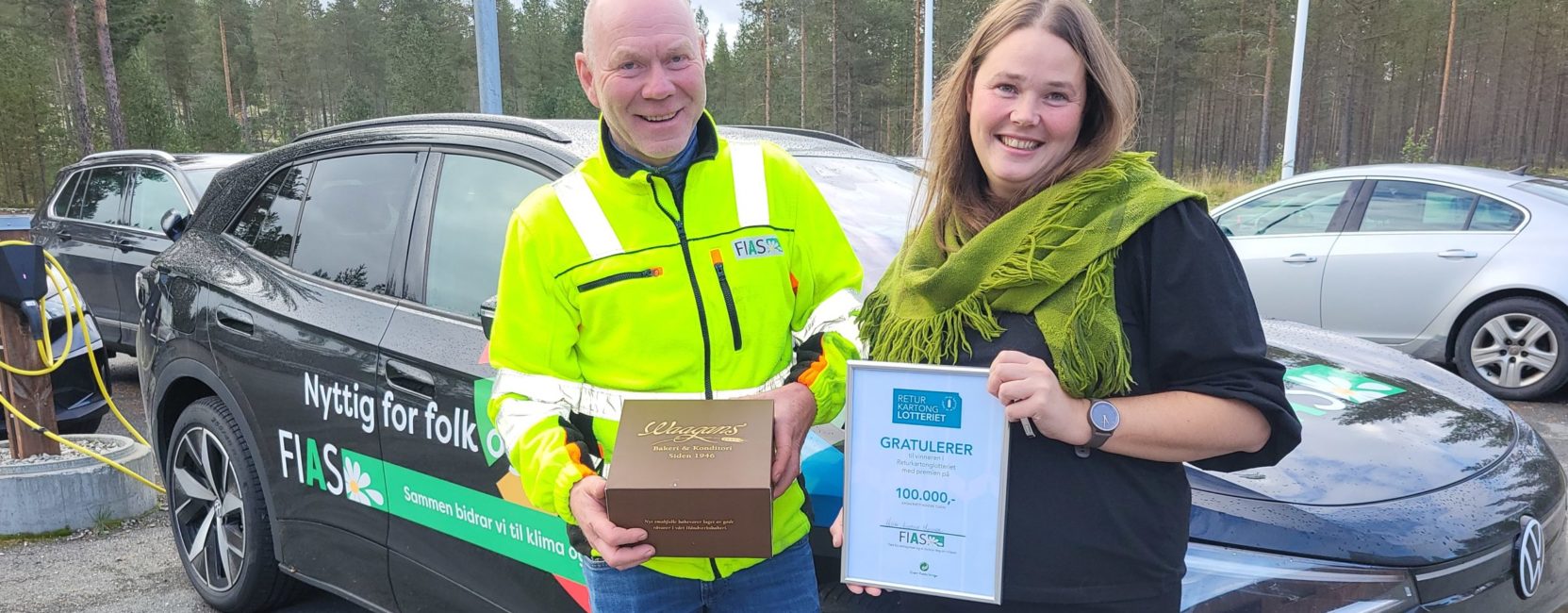 Den heldige vinneren ble trukket ut i den nasjonale trekningen og får 100 000 kroner rett inn på konto. Vedkommende bor i Engerdal kommune, og premien er en velfortjent belønning for god kildesortering – og en ekstra motivasjon for flere til å delta.